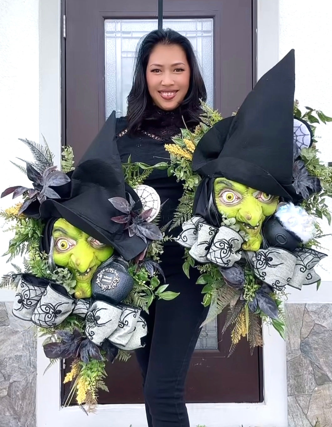 Scary Green Witch Wreath with Bubbly Cauldron
