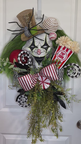 Scary Clown Wreath with Joker Smile and Green Hair
