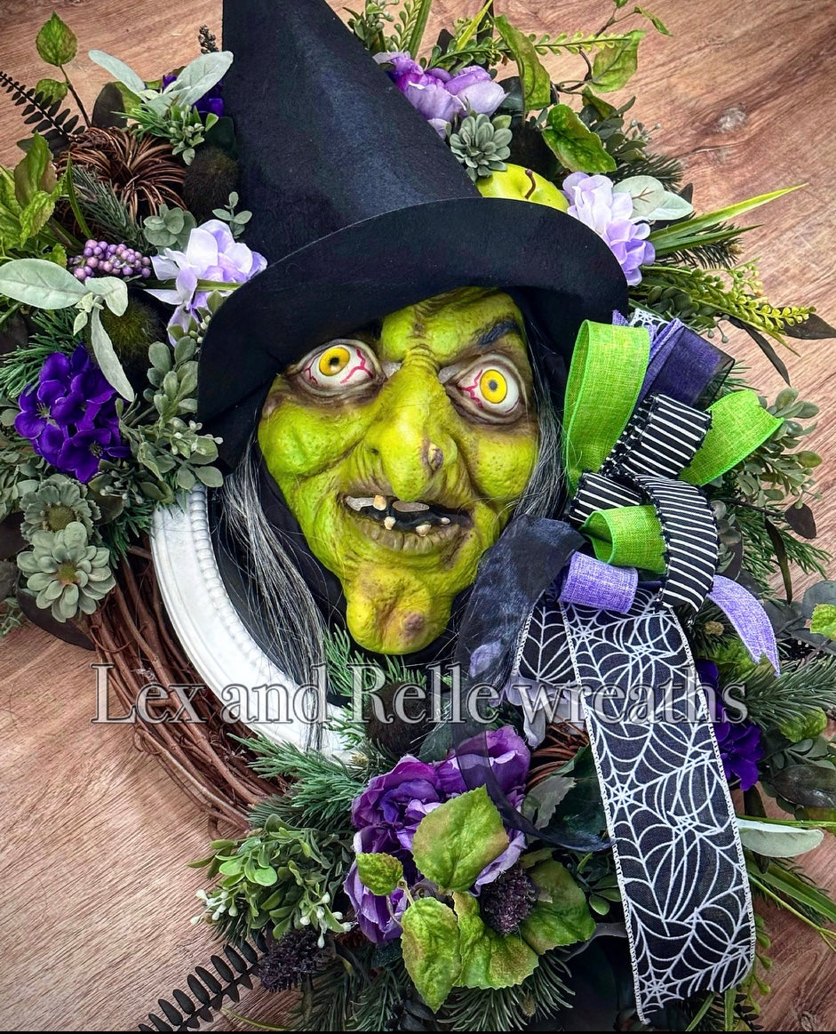 Witch Wreath Green and Purple Scary Halloween